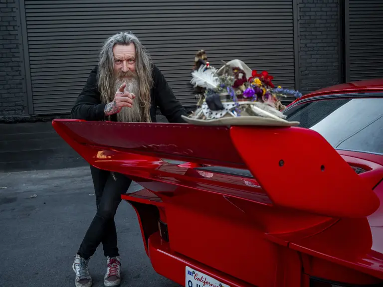 So this particular car—maybe five or six years ago I started thinking it's really time to get a second slant-nose. I looked at factory original slant-noses, I looked at backyard build slant-noses, modified slant-noses, and nothing ever really ticked the box. And as fate would have it, when I'd sort of stopped looking, ironically, I got a call from Rob Dietz over at WOB Cars and he said he had a customer who was selling one. I went out there to look at it and bought it. It was the cheapest one I'd looked at. I drove it home and didn't really think too much of it. Drove it a couple of times. We ended up getting that iconic shot of Willow jumping out of the side of it in 2021 that photographer Daniel Malikyar took [as part of a 2021 photo series displayed at Santo Gallery].