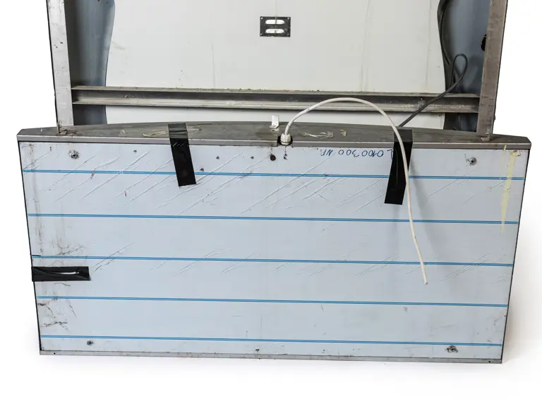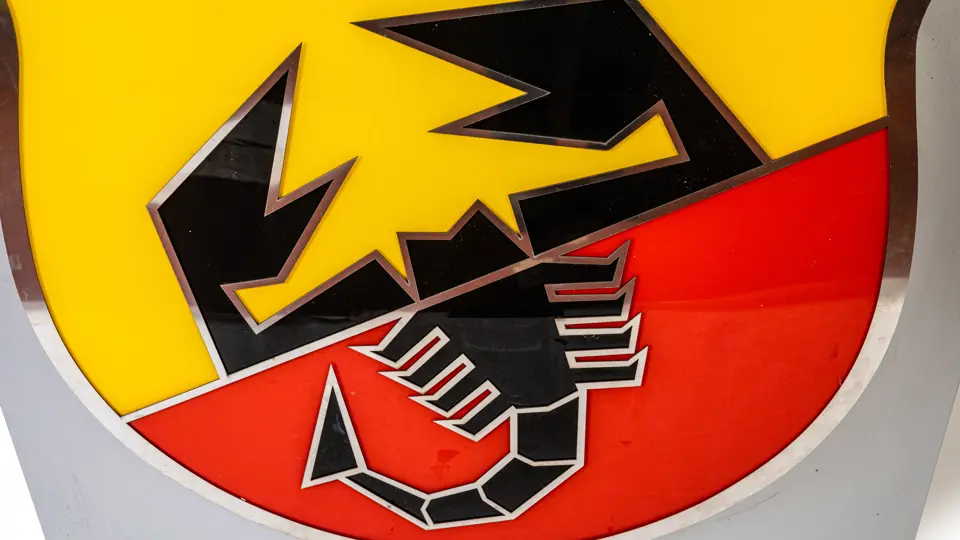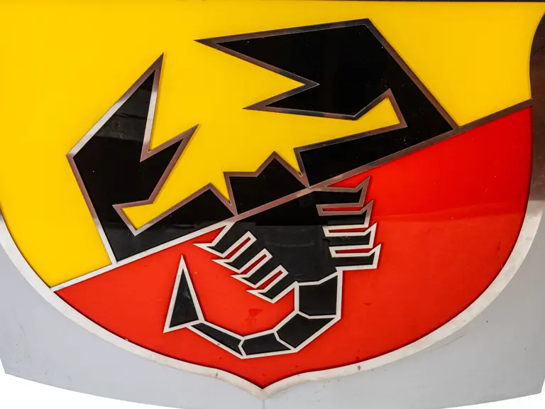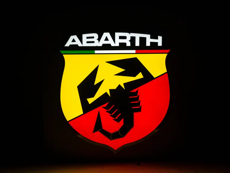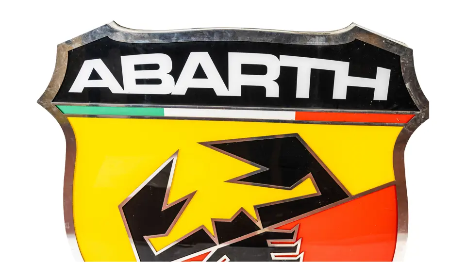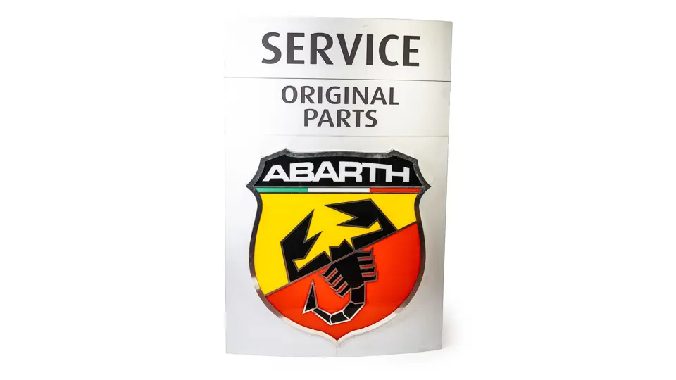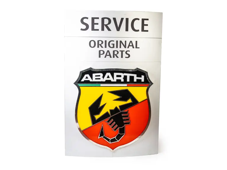 The Abarth logo section measures 140 cm x 140 cm x 18 cm and weighs 27 kilograms.